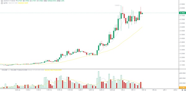 另外,Astar zkEVM 的推出将为平台增加一层隐私和安全性。ASTR 将自己定位为全球采用并向数十亿人提供 web3 技术。 Astar 的盘中表现令人印象深刻,上涨 4.3%,使其价值达到 0.153 美元。同样,过去一个月涨幅超过 90%,24 小时交易量达到 1.03 亿美元。