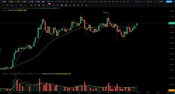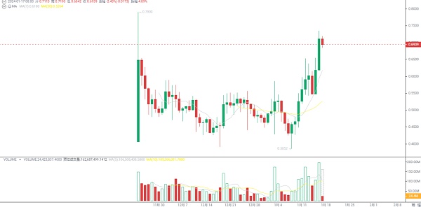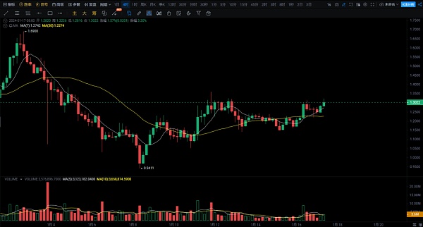 Mina 目前表现的很强势,上方压力1.32已经测试两次了 再一再二没有再三,本次看突破1.32的位置就会来到1.42-1.44附近,可在持有一下 。