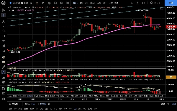 大饼昨日白盘呈碎步上涨走势晚间加速下跌至42060附近支撑反弹,**触及43560一线受阻回落,恭喜跟上昨日思路的朋友多单获利1500点,目前币价在42870附近运行,四小时级别行情再次插针触及ma200均线受阻回落,底部支撑逐渐抬高,macd多头无量运行双线金叉向上,若回踩不破42500还是会继续试探上方压制,短期没什么变化仍是震荡走势,日线级别来看行情整体被ma60均线支撑,虽收阳线但反弹力度不大,ma7向下指引,macd空头逐步放量双线死叉向下,整体走势偏弱,预计后市会回踩4w关口,思路建议逢高做空为主低多为辅,上方压制43300-43600,下方支撑42000-41500