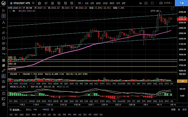 以太坊昨日走势与大饼一致呈震荡上行,晚间低位回踩至2500一线后支撑反弹,**触及2612一线受阻回落,恭喜跟上昨日思路的朋友多单获利100点,目前币价在2570附近运行,四小时级别k线收上影后走出一波回踩但受ma7均线支撑空头下跌暂缓,macd无量运行双线呈粘合状态,短期走势**没什么方向,整体以震荡为主,关注2540支撑情况,日线级别昨日价格再次收回ma7附近,且走出一波冲高,但多头却没能站稳,若能收线在ma7下方预计后市会开启回调走势,思路建议逢高做空为主低多为辅,上方压制2600-2620,下方支撑2540-2500