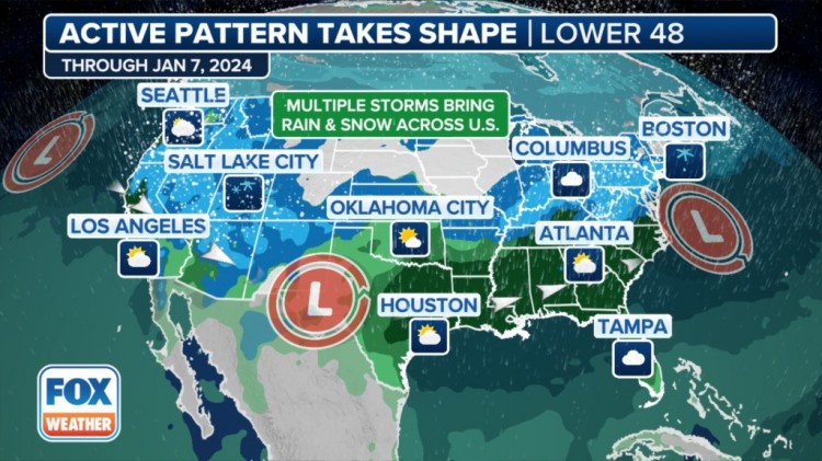 低压系统在美国各地行进,将为**带来从雨到雪的活跃天气。