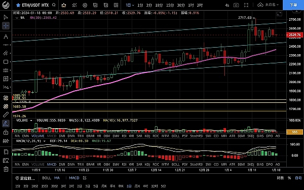 以太坊近期走势与大饼一致,昨日整体呈震荡下行走势,但比大饼稍强,**跌至2507一线支撑反弹,恭喜跟上思路的朋友,目前币价在2528附近运行,四小时级别多次跌至2500附近都未曾破位可见支撑力度较强,整体依旧是横盘震荡行情,上下都不延续,短期走的依旧很弱,预计会下破2500支撑形成缓冲,短期切勿做多,日线级别k线收倒锤子线可见短期上涨受阻,ma7拐头向下,且多头逐步缩量若形成死叉势必会引起一波不小的下跌,短线的话以高空为主,主要这个币有大利好未来的行情不会差拿长线就等低位筹码,上方压制2570-2620,下方支撑2500-2460