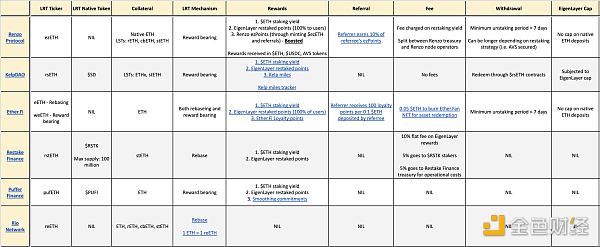 与接收ETH和分发奖励相关的基本机制:有许多值得比较的参数,如支持的LSTs、费用、推荐机制、提现时间框架等。参考@jinglingcookies的比较。