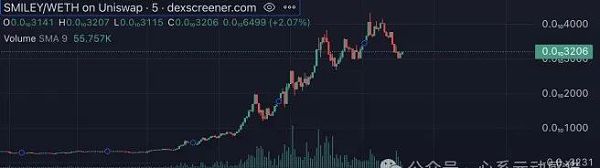 截至撰稿时,SMILEY 价格为 0.0(10)31 美元,24 小时涨幅 895%,市值为 1340 万美元。