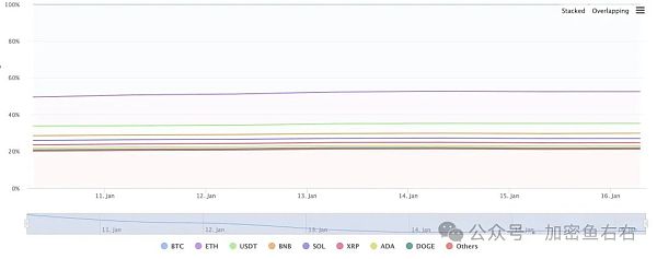 TradingView 数据显示,目前比特币的总加密市占率为 47.56% ,近一周以来正持续走低。