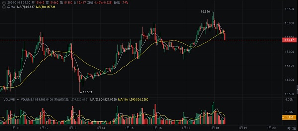 LINK 的 10 日移动平均线位于 15.82 美元,表明短期趋势看涨,而 100 日移动平均线位于 15.08 美元,表明中期趋势相对稳定。