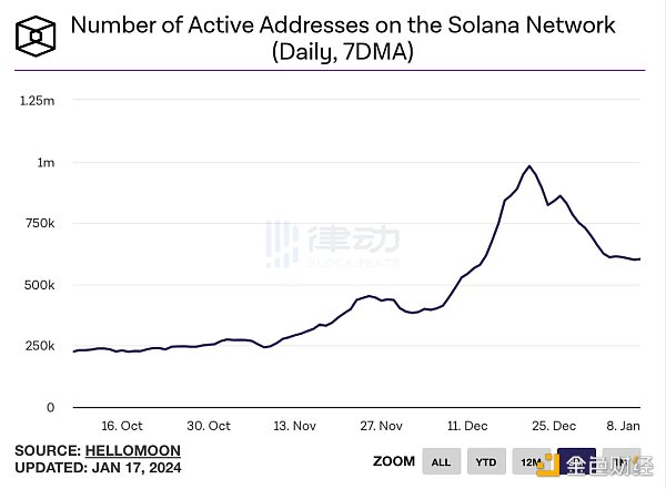 除了比特币生态崛起,还有拿了逆袭剧本的 Solana,SOL 是 2023 下半年币价拉升反弹的领头羊之一,截至 2023 年底,SOL 市值为 438 亿美元,环比增长 423%,同比增长 1106%。meme 币 BONK 和 JTO 空投打头阵,将 Solana 生态热度带出圈,随后迎来的 meme 季甚至让 Solana DEX 交易量一度超越以太坊,让 Solana 生态的基础设施项目获得了大量的收益,其中包括 DEX Raydium 以及钱包 Phantom。