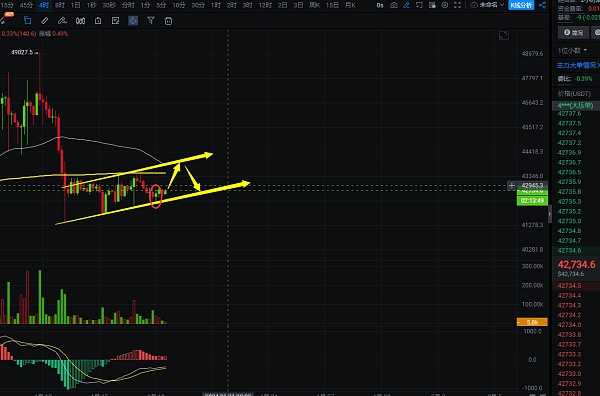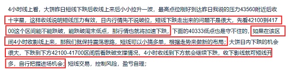 昨日行情如预期走出小幅下跌,大饼下跌点位在42192位置,我们说的下跌区间是42100-41700区间,基本靠近该区间,随后行情没有延续下跌走出反弹,留下一根还算比较长的下影线,昨日已经提示大家,到达该区间收下影线,就震荡思路布局多单,多单做了布局的短线可持有;以太昨晚也是给到了下跌,下跌点位在2505位置,也是到达预测点位2520-2500区间了,到达后没有跌破2470并收针,昨日也提示大家,到区间收下影线,就可布局多,多单布局的就可安心持有;日内交易震荡思路去做布局;