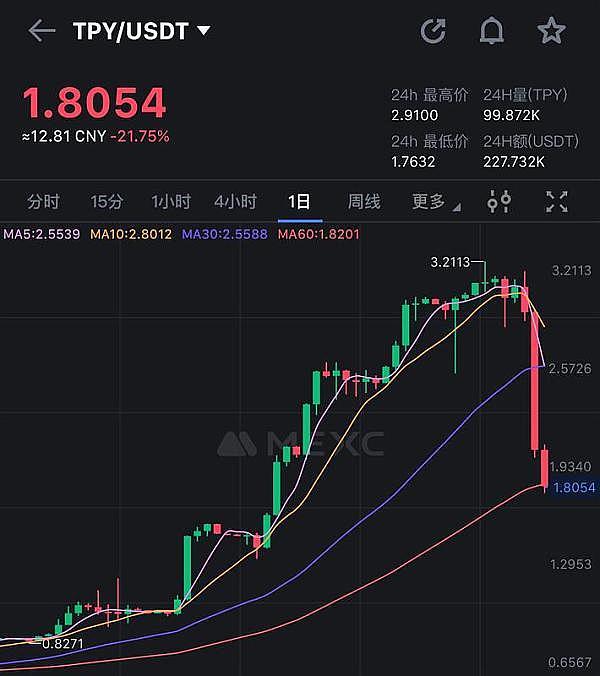 从火币的评论区也可以看到很多地推宣传,由于地推盘主导,自然抛压也会减少,大盘在下跌时,tpy的价格并不受影响。但最近的地推活动并不是最旺盛的时候,却出现一波从0.6涨到3的大额涨幅行情,这背后或许离不开项目方左右互倒自导自演,其目的就是拉高出货。