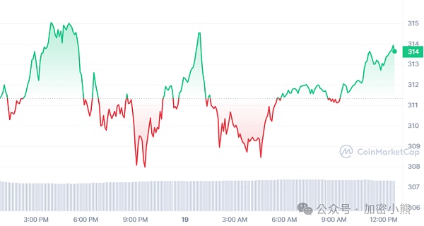 在**的单日价格趋势中,BNB呈现出明显的看涨迹象,买盘压力推动 BNB/美元价格攀升至 312.1 美元。尽管最近市场经历了一些看跌压力,但随着多头再度占据主导地位,市场情绪已经发生了积极变化。