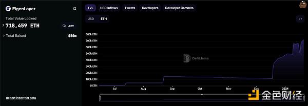 @eigenlayer 持有约 745,000 个 ETH(注意 Llama 图形有点陈旧)。 尽管主要 LST 在协议 EtherFi、Kelp 和 Renzo 的驱动下已达到上限,但这一数字一直在稳定增长。