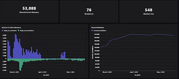 社区参与在 Web3 中也是很重要的。一个活跃的社区代表了一群多元化的个体,他们积极参与游戏生态系统。游戏社区中的参与者通常包括玩家、分析师、社区大使等。官方游戏社区是玩家获取官方公告的主要渠道,也是社区成员互动的主战场。因此,分析社区数据,如成员数量的趋势和社区参与度,对游戏开发者至关重要。