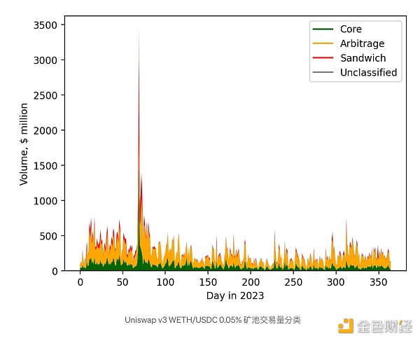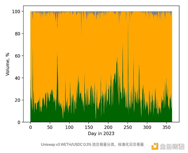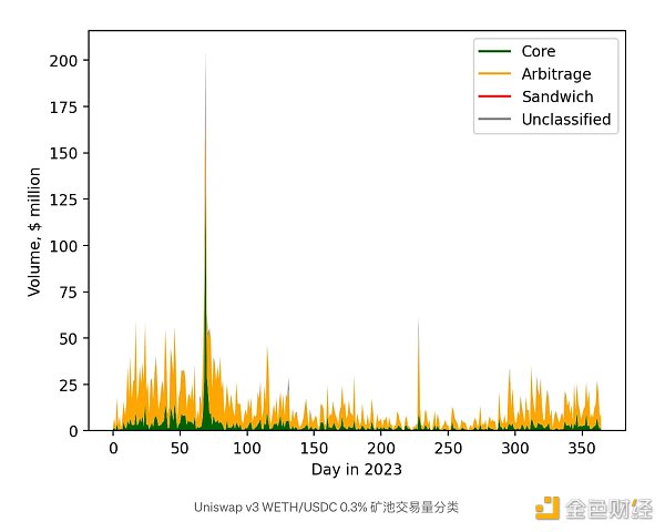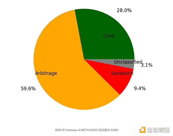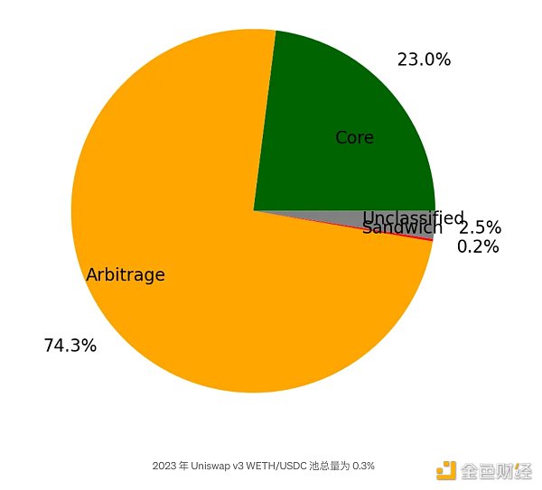 这些结果与 v3 矿池结果形成鲜明对比,后者的套利交易比例要高得多。见下文: