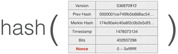 比特币挖矿的工作量证明原理就是,不断尝试计算区块的哈希,直到计算出一个特定的哈希值,通过改变区块头部的一个nonce字段的值,计算机可以计算出不同的区块哈希值:
