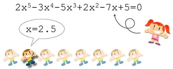 假设某个学校的一个班里,只有一个女生叫小红,其他都是男生。每个男生都想约小红看电影,但是,能实现愿望的只能有一个男生。到底选哪个男生呢?本着公平原则,小红需要考察每个男生的诚意,考察的方法是,出一道数学题,比如说解方程,谁**个解出这个方程,谁就有**陪小红看电影。因为解高次方程没有固定的公式,需要进行大量的计算,才能算出正确的结果,这个计算过程就需要**的工作量。假设小明率先计算出了结果x=2.5,小红可以简单地验证这个结果是否正确。