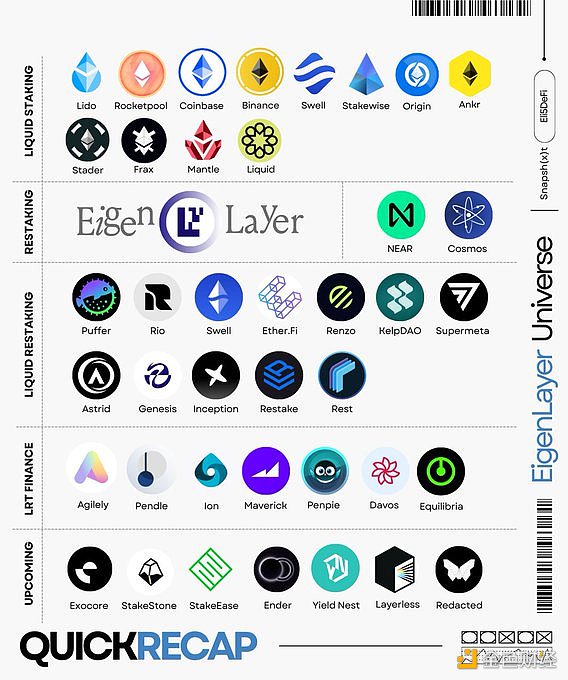 图为 EigenDA 的合作伙伴,来源:https://x.com/eigen_da/status/1731674794347860449?s=20 二、再质押赛道潜力项目有哪些?