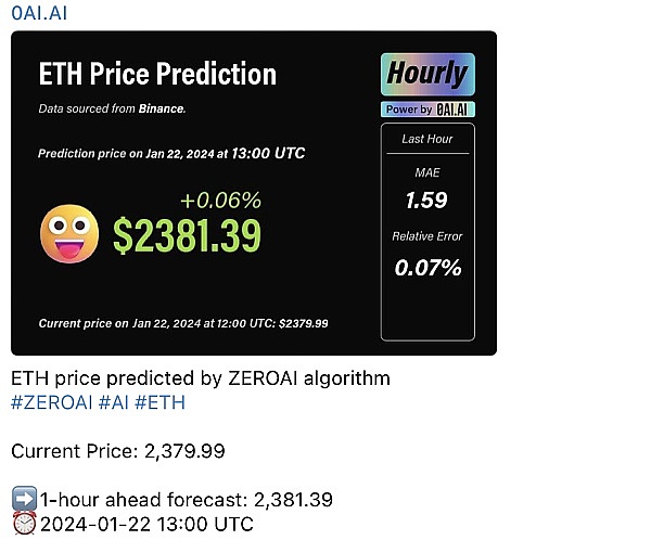 以下是 0AI.AI 对 #BTC 和 #ETH 做出的价格预测示例: