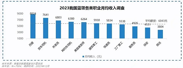 (蓝领收入职业差距。图源:《2023**蓝领群体就业研究报告》)