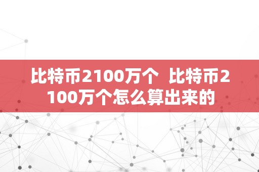 比特币(Bitcoin)作为**个成功的加密货币,引起了全球范围内的关注和热议,在比特币的设计中,有一个非常重要的参数,即比特币的总发行量,据估计,比特币的总发行量将不超过2100万个,比特币2100万个是如何算出来的呢?这个数字又代表着什么意义?本文将围绕这几个关键词展开详细描述。