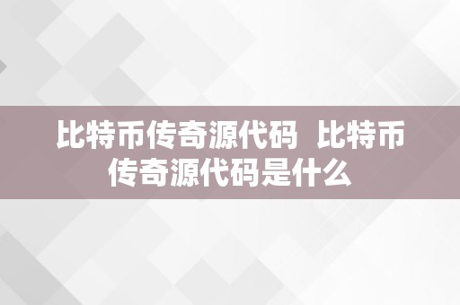 比特币传奇源代码及比特币传奇源代码是什么