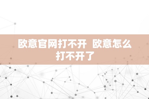欧意官网打不开 欧意怎么打不开了