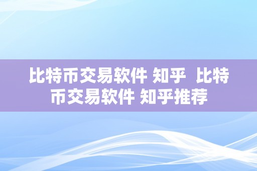 比特币交易软件 知乎 比特币交易软件 知乎推荐