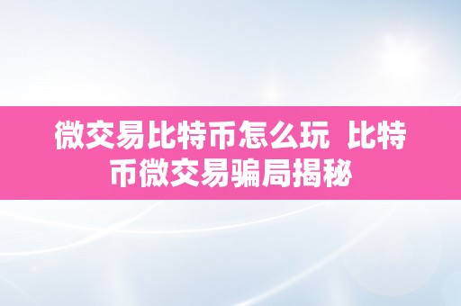 如何玩微交易比特币?揭秘比特币微交易**,**解析