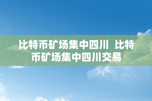 比特币矿场集中四川,成为全球**的比特币挖矿**之一,这一现象引起了广泛的关注和讨论,本文将深入探讨比特币矿场集中在四川的原因以及这一现象对当地经济和环境的影响。