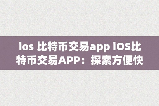 ios 比特币交易app iOS比特币交易APP:探索方便快捷的数字货币交易体验 ios比特币交易app