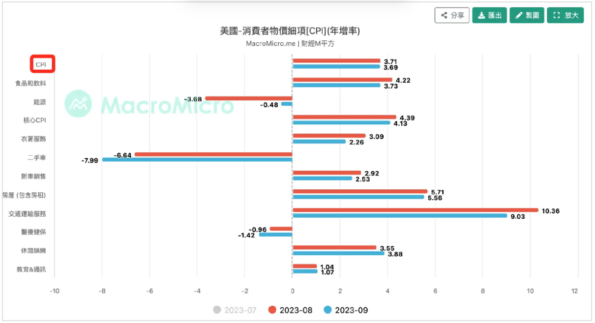 所以,我们在分析 CPI 数据时,要把 CPI 以及核心 CPI 结合起来一起看。