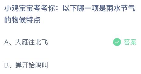 2、小鸡宝宝考考你:以下哪一项是雨水节气的物候特点?