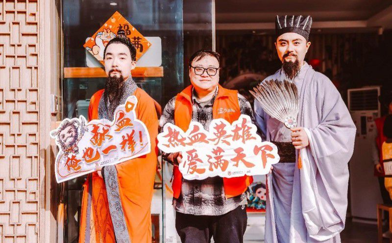 “何为英雄 热血集结”,这不仅仅是一句口号,更表达出许多爱心献血人士的共同信念。1月13日活动首日,数位特别的“英雄”已经集结。他们中有学生、白领,也有三国人物Coser。三国人物Coser在献血屋附近,手持卡游三国卡包等周边产品,向爱心献血人士致敬。