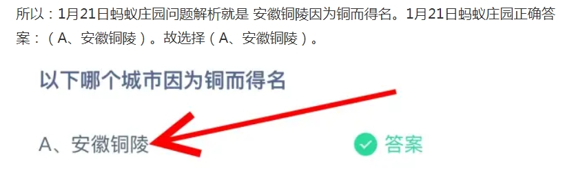 以下哪个城市因为铜而得名?这是支付宝蚂蚁庄园1月21日的问题,在今日已提前公布,答对即可获得一份110g小鸡宝宝饲料作为奖励。那么接下来就让我们一起了解一下正确答案吧。