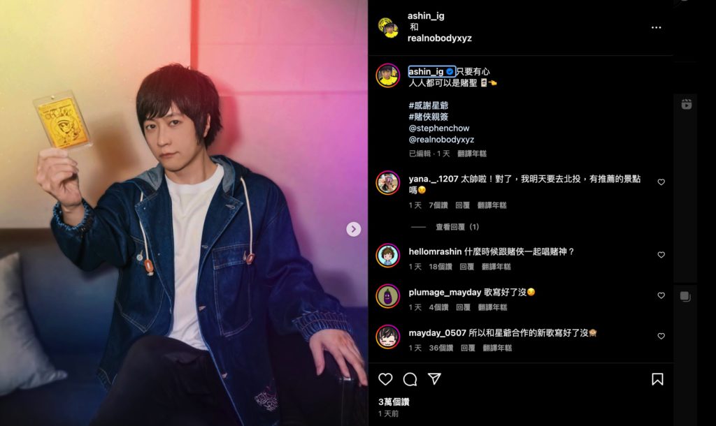 币圈子(120BTc.COM)讯摇滚天团五月天主唱阿信,在周末惊喜分享他获得香港喜剧之神周星驰「星爷」,送给他的亲笔签名NFT,阿信还在贴文中写道只要有心,人人都可以是赌圣!感谢星爷,赌侠亲签。