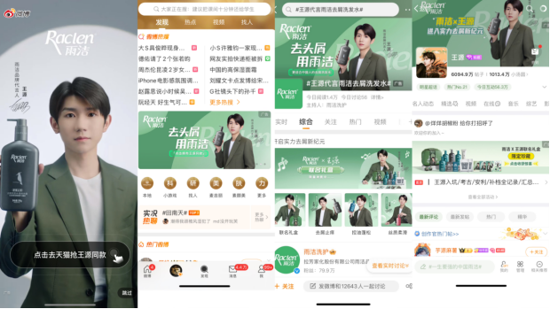2024年3月4日,雨洁官宣王源成为全新品牌代言人,官宣当日,雨洁洗发水与王源的热度飙升,霸榜各大社交媒体,雨洁与王源的牵手,也意味着雨洁也将迈入全新时代。