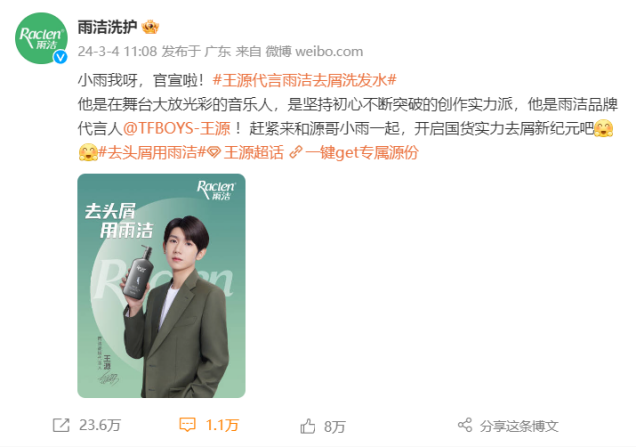 为什么是王源?这背后,是雨洁在品牌年轻化上的考量。作为国民级青年偶像,王源在Z世代人群中有着极高的关注度和影响力,出道11年,以动人心弦的歌声和非凡的创作实·这与雨洁品牌“专注执着,死磕到底”的理念和年轻化的品牌主张高度契合。