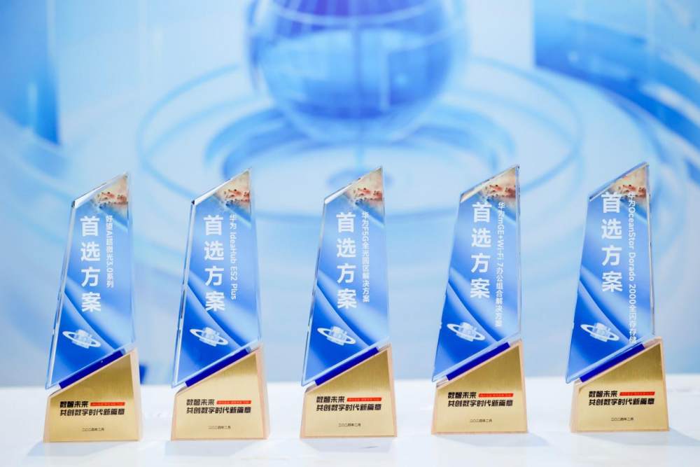 现场展示的华为“**方案”产品/方案有:华为mGE Wi-Fi 7办公组合解决方案、华为F5G全光园区解决方案、华为OceanStor Dorado 2000全闪存存储、华为IdeaHub ES2 Plus和好望AI超微光3.0系列;