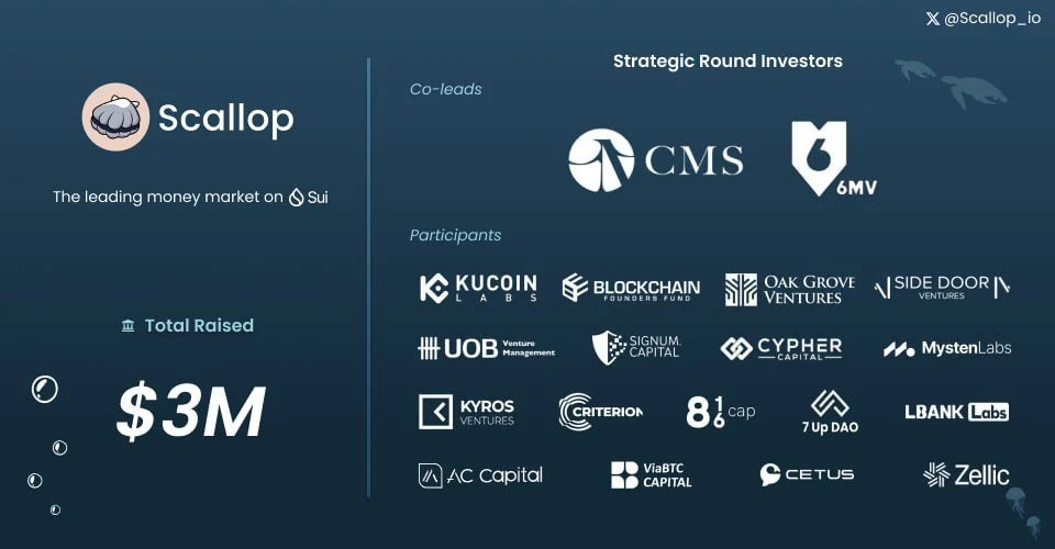 除了得到Sui基金会的明确支持,Scallop也在最近完成了由CMS、6th Man Ventures、KuCoin Labs、Blockchain Founders Fund、Cypher CaPital和United Overseas Bank风险投资部门等领投的300万美元融资。
