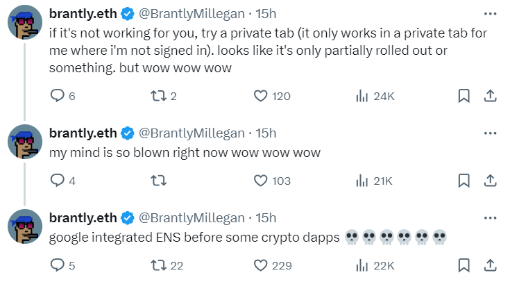 Google扩大支持ENS域名关联钱包查询