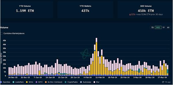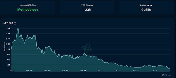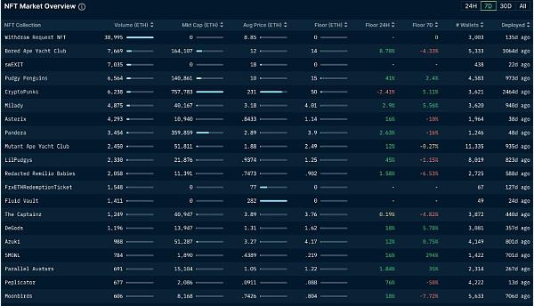 本周NFT市场蓝筹项目地板价有涨有跌,但波动幅度不大。.BAYC下跌4%,MAYC上涨2%,CryptoPunks上涨7%,Azuki上涨近3%,Pandora下跌2%,Milady上涨6%。本周NF市场大盘继续下跌,并且已经跌到过去一年**点。本周NFT市场总交易量有小幅回升,但**购买NFT买家和复购买家数量依旧没有**起色。伴随牛市的到来,NFT市场的低迷还在持续。