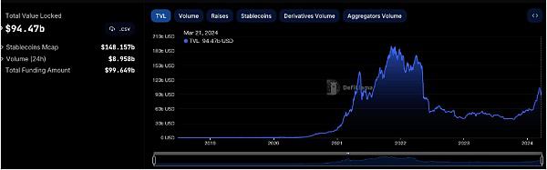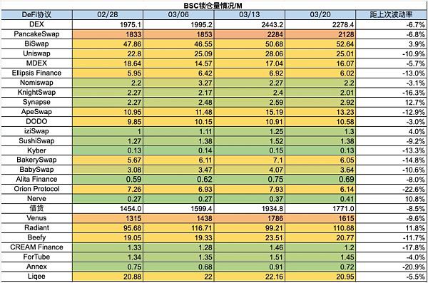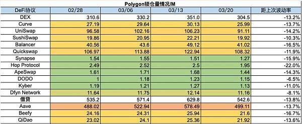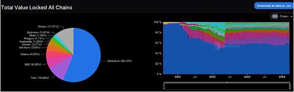 本周总TVL为945亿美金,整体下跌84亿,下跌幅度为8.2%。BTC本周回调幅度接近20%,成功在60000的位置撑住,向上力度也比较强势。本周主流公链TVL除了SOLANA链以外**大跌。最近最火热的公链**属于SOLANA链,过去一周上涨6%,过去一个月**85%。除此之外,ETH链最近表现比较低迷,本周ETH链下跌14%,POLYGON链下跌15%,OP链,BLAST链,ARB链,均下跌9%左右。BSC链下跌7%,TRON链下跌8%。