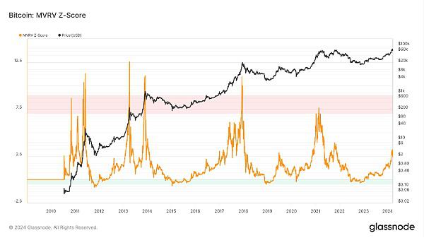 长期趋势指标MVRV-ZScore以市场总成本作为依据,反映市场总体盈利状态。当指标大于6时,是顶部区间;当指标小于2时,是底部区间。MVRV跌破关键水平1,持有者总体上处于亏损状态。当前指标为2.8,进入中间阶段。