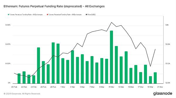 期货资金费率:本周费率恢复正常水平。费率0.05-0.1%,多头杠杆较多,是市场短期顶部;费率-0.1-0%,空头杠杆较多,是市场短期底部。