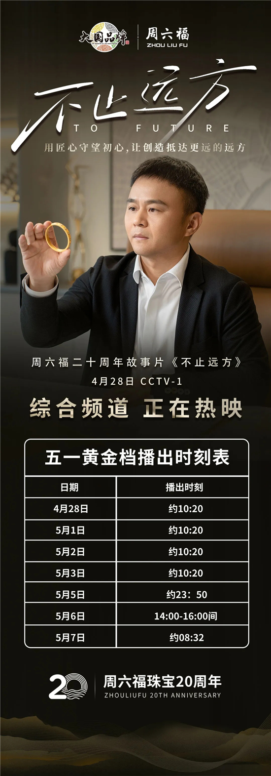 4月28日,《大国品牌》携手周六福共创的故事片《不止远方》于CCTV-1重磅播出。这是周六福与《大国品牌》的第三次合作,又恰逢周六福品牌成立二十周年的重要时刻,更显意义重大。