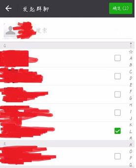第三步、在弹出的通讯录好友中大碰选择你想要建禅仿慧立群聊的那个人和一个已经删除自己贺答好友,之后点击右上角“确定”,如下图所示: