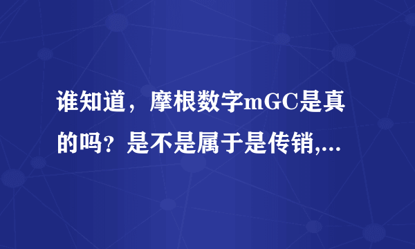 谁知道,摩根数字mGC是真的吗?是不是属于是传销,谁能告诉我,急 作者:LR •更新时间:2024-05-07 16:49:18•阅读 0谁知道,摩根数字mGC是真的吗?是不是属于是**,谁能告诉我,急的有关信息介绍如下: 摩根数字mGC属于虚拟币吧,**禁止的。