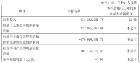 **网财经5月9日讯 日前,康希诺发布2024年一季报。今年1-3月,公司实现营收1.14亿元,同比增长13.65%;归属于上市公司股东的净利润为-1.7亿元,扣非净利润-1.79亿元;经营活动产生的现金流量净额告负,为-1.08亿元。