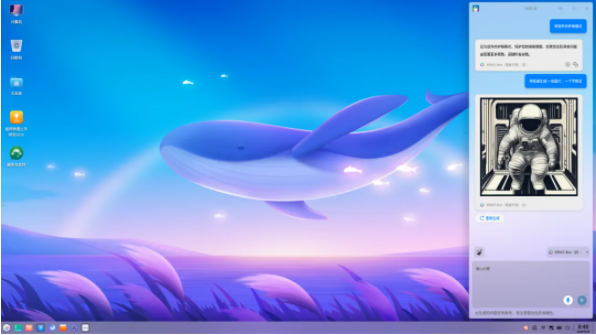 在1070版本上,我们搭载了全新升级的UOS AI智能助手1.2版本,在1.1版本基础上,提升了自然语言交互的执行精度,增加了自由度更高的窗口模式界面,让用户能在内容创作、智能问答、系统自动化等多个场景中充分地利用人工智能,提升工作效率和用户体验。