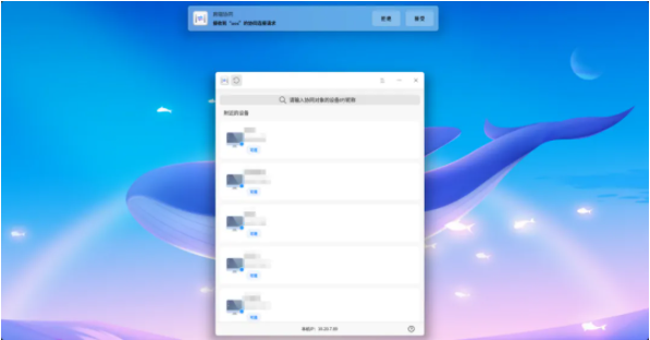 2、点击“连接”图标,对端会收到一条系统通知,点击接受即可完成两台设备的协同连接。