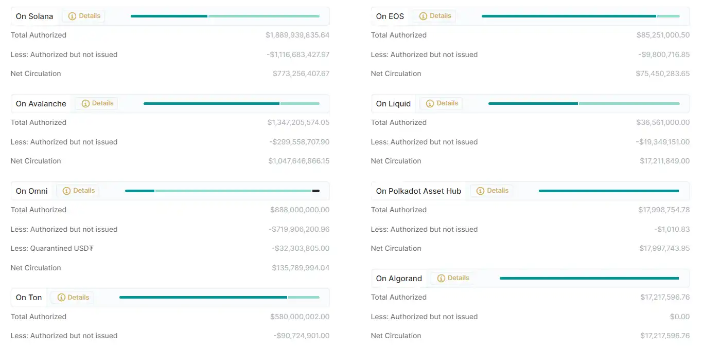 据 Tether 官网显示,目前 Tether 发行 USDT 的区块链包括 Tron(波场)、以太坊、Solana、Ton、Avalanche、Near…等多条公链。